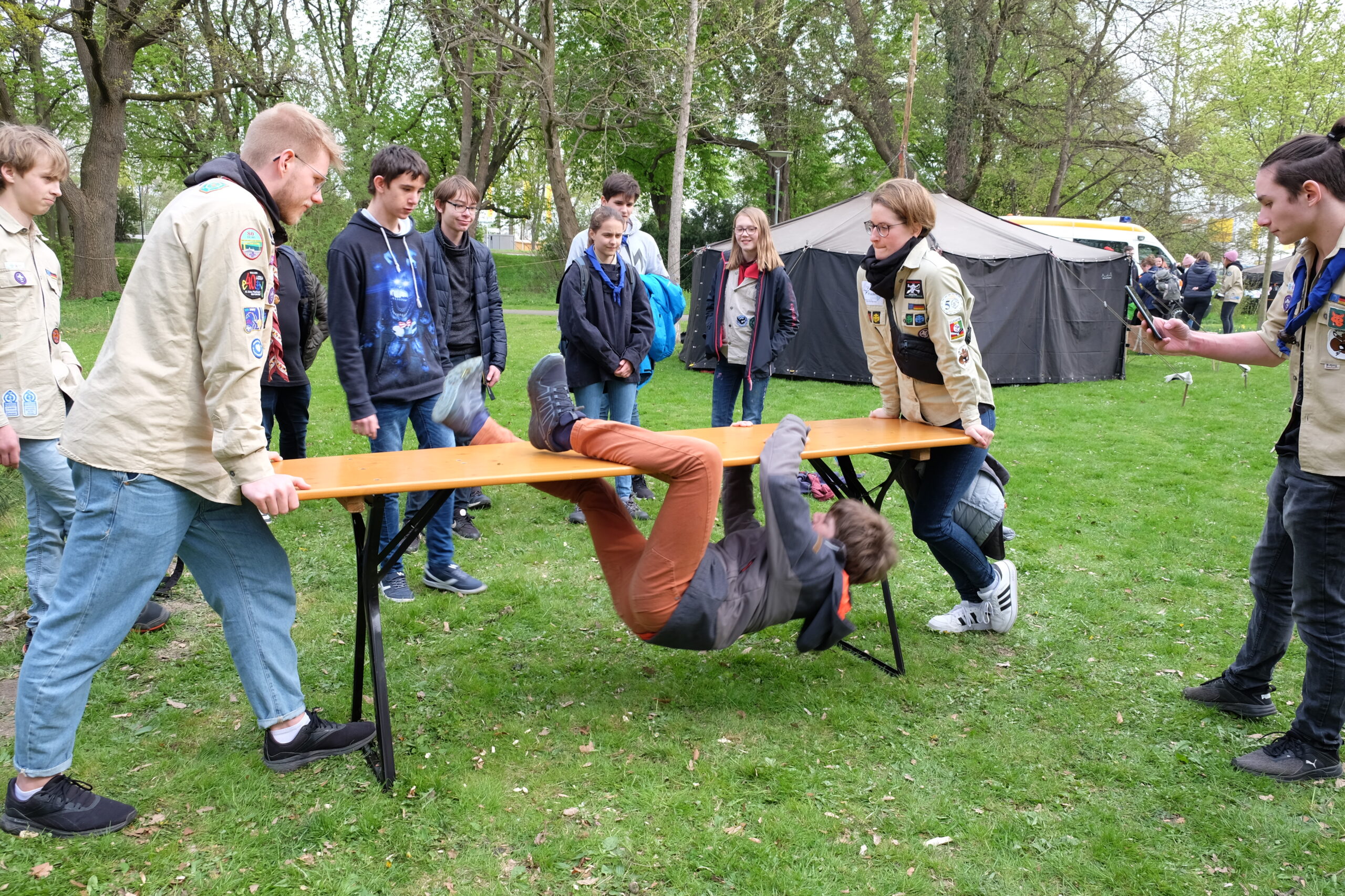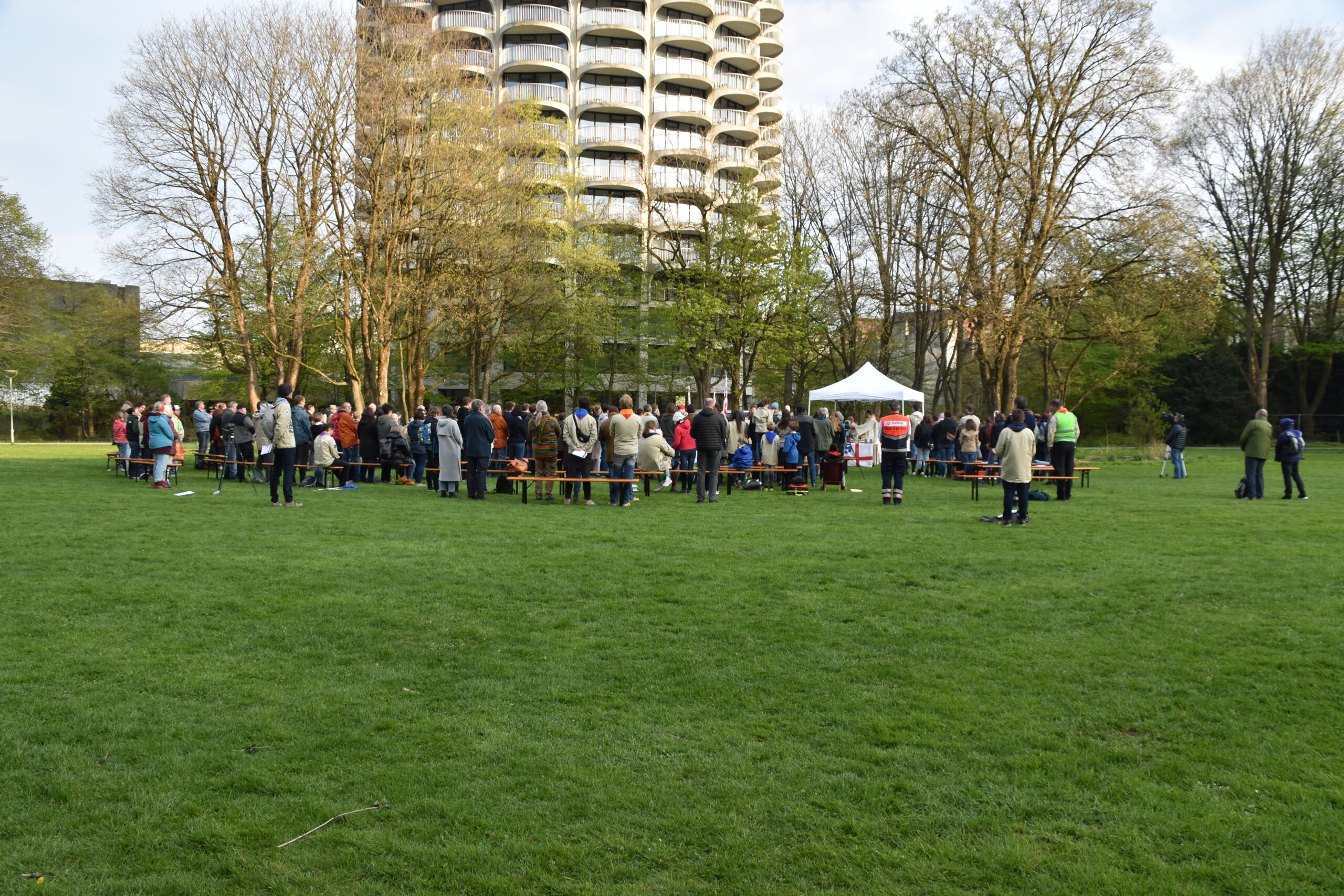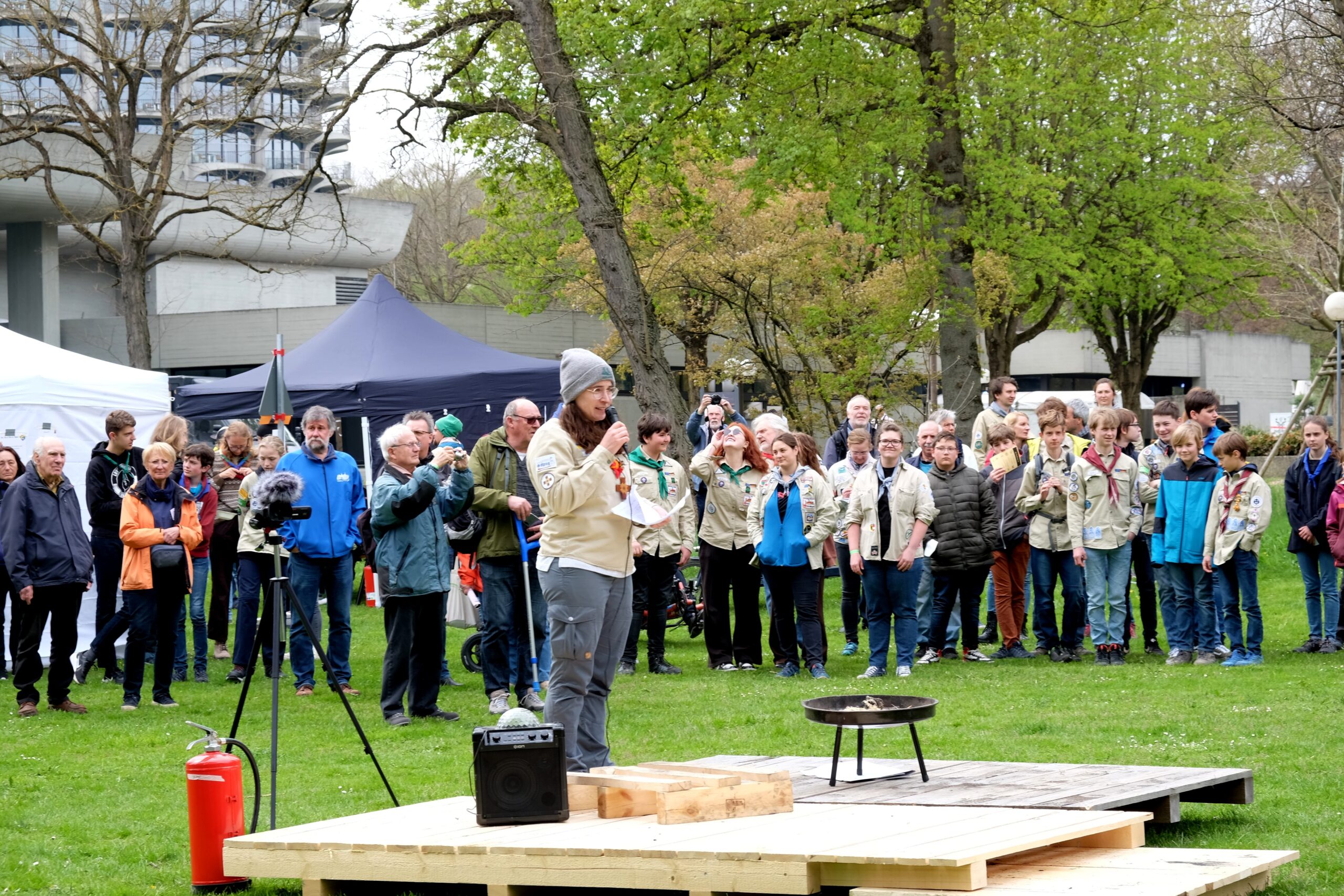 Schön, dass ihr alle dabei gewesen seid und die Wiese vor dem Hotelturm für einen Nachmittag mit dem pfadfinderischen Geist erfüllt habt! Was zu Beginn der Veranstaltung noch ein Funke war, wurde durch euch zu einem Feuer für die Pfadfinderei.